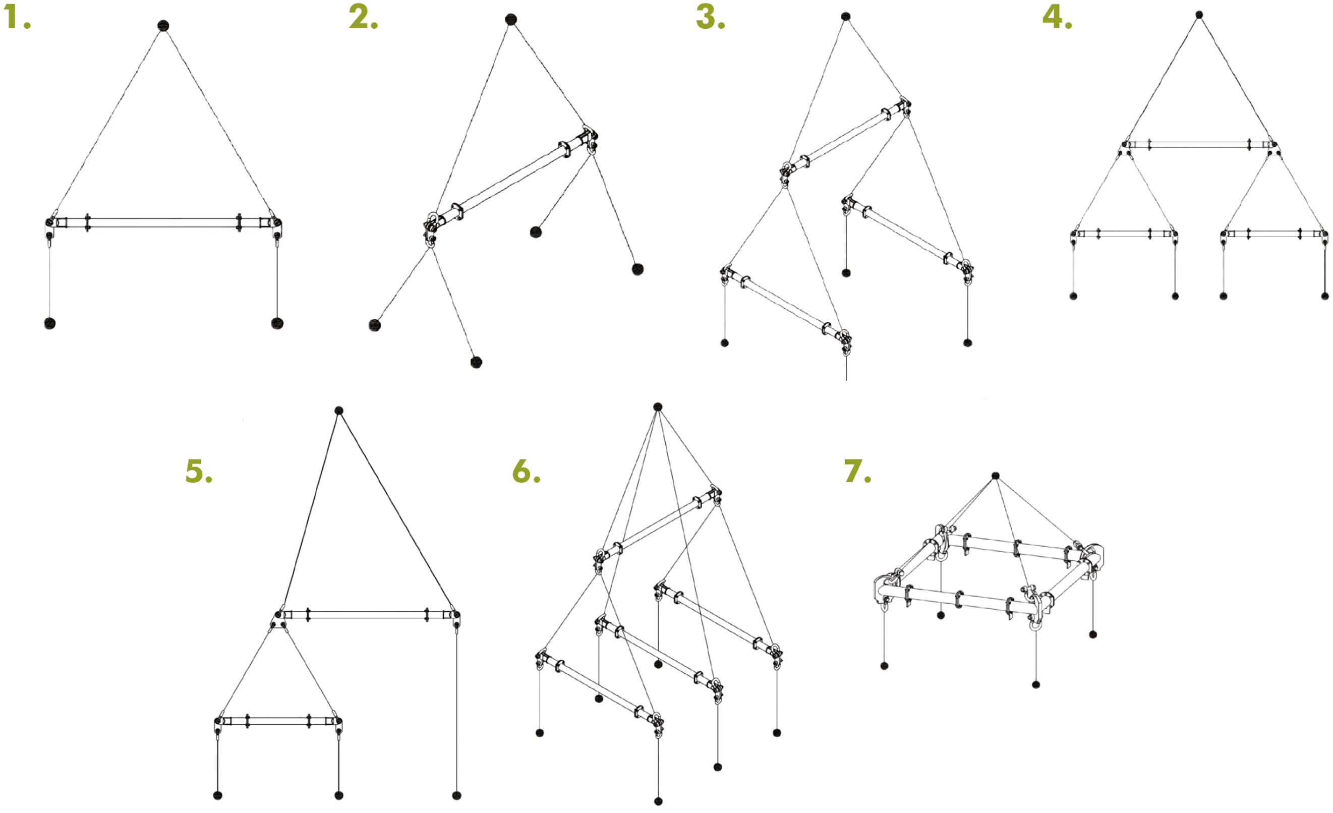 Wenn eine ungerade Anzahl von Punkten angehoben werden muss, kann ein 1 über 1 System verwendet werden, um die Last zu heben und trotzdem ein ausgewogenes Niveau zu erhalten.